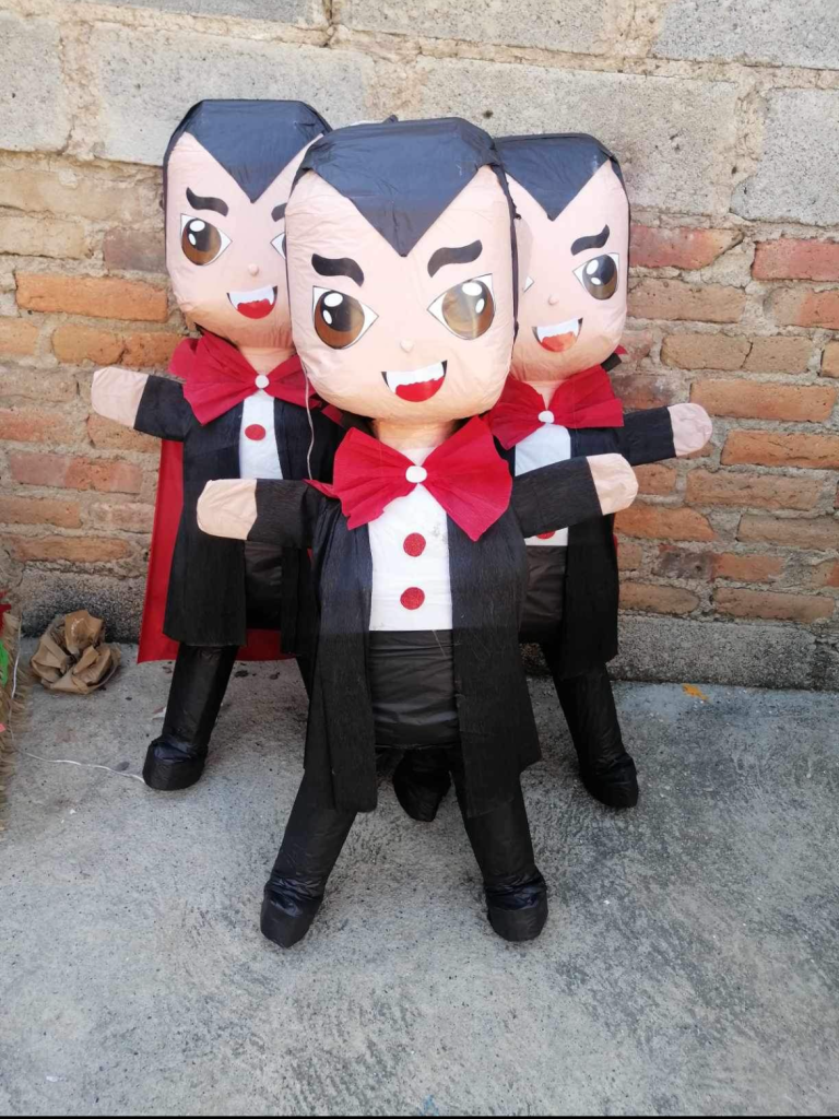 Nuestra línea de Halloween incluye piñatas, adornos y canastas elaboradas con 90% de material reciclado, disponibles en distintos personajes temáticos.
